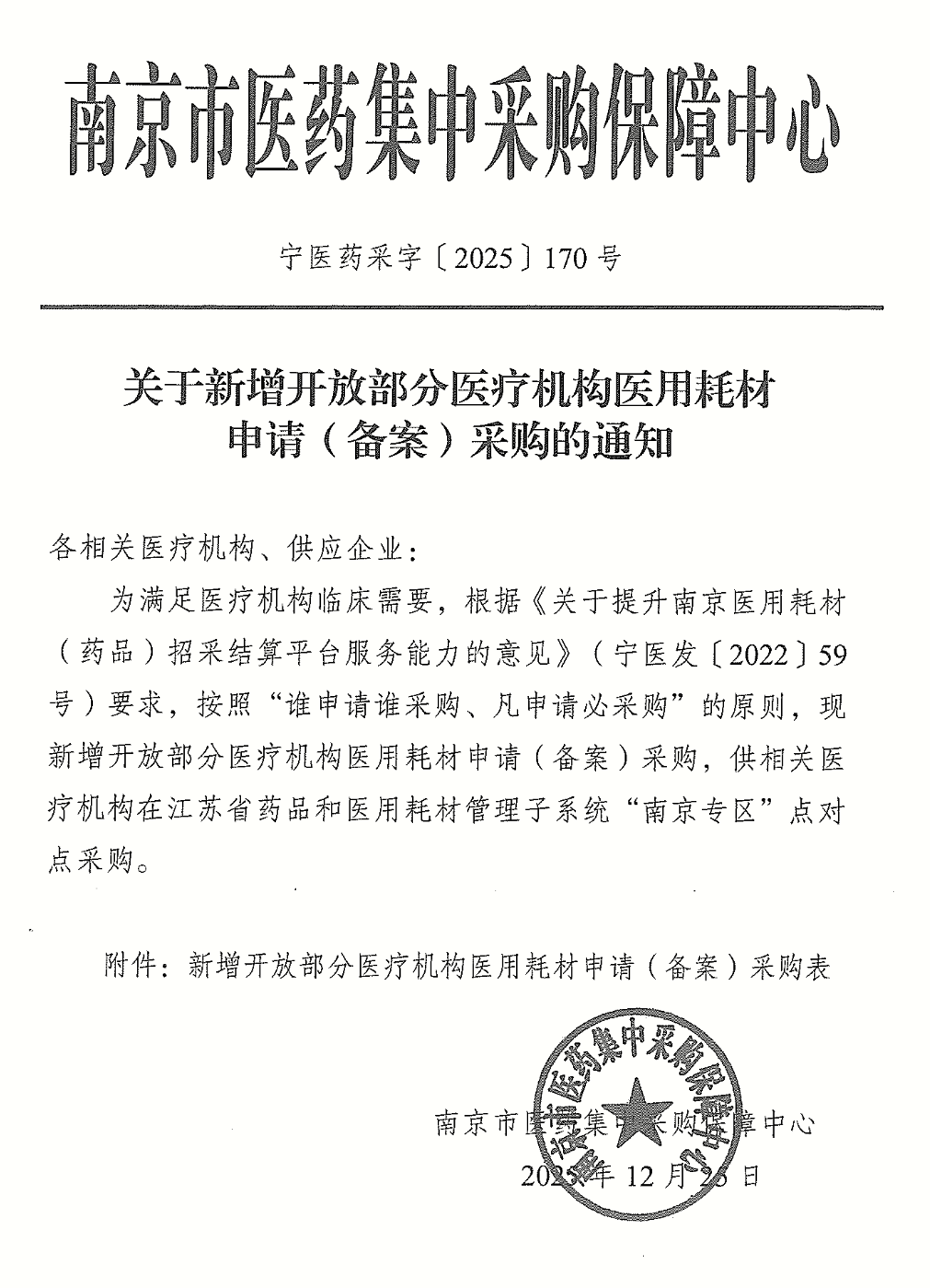 寧醫(yī)藥采字〔2025〕170號—關(guān)于新增開放部分醫(yī)療機構(gòu)醫(yī)用耗材申請(備案)采購的通知