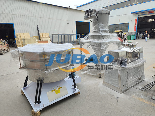 巨寶真空上料機,搖擺篩,混合機打包發(fā)貨現(xiàn)場