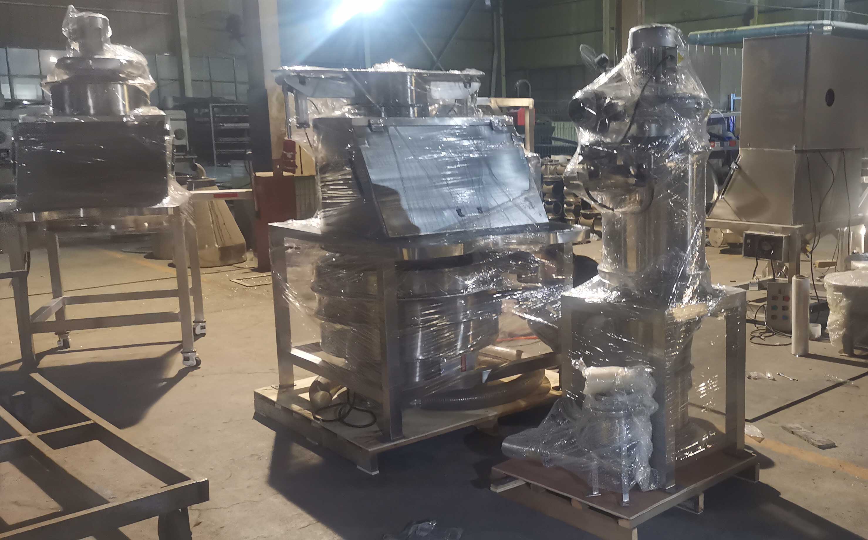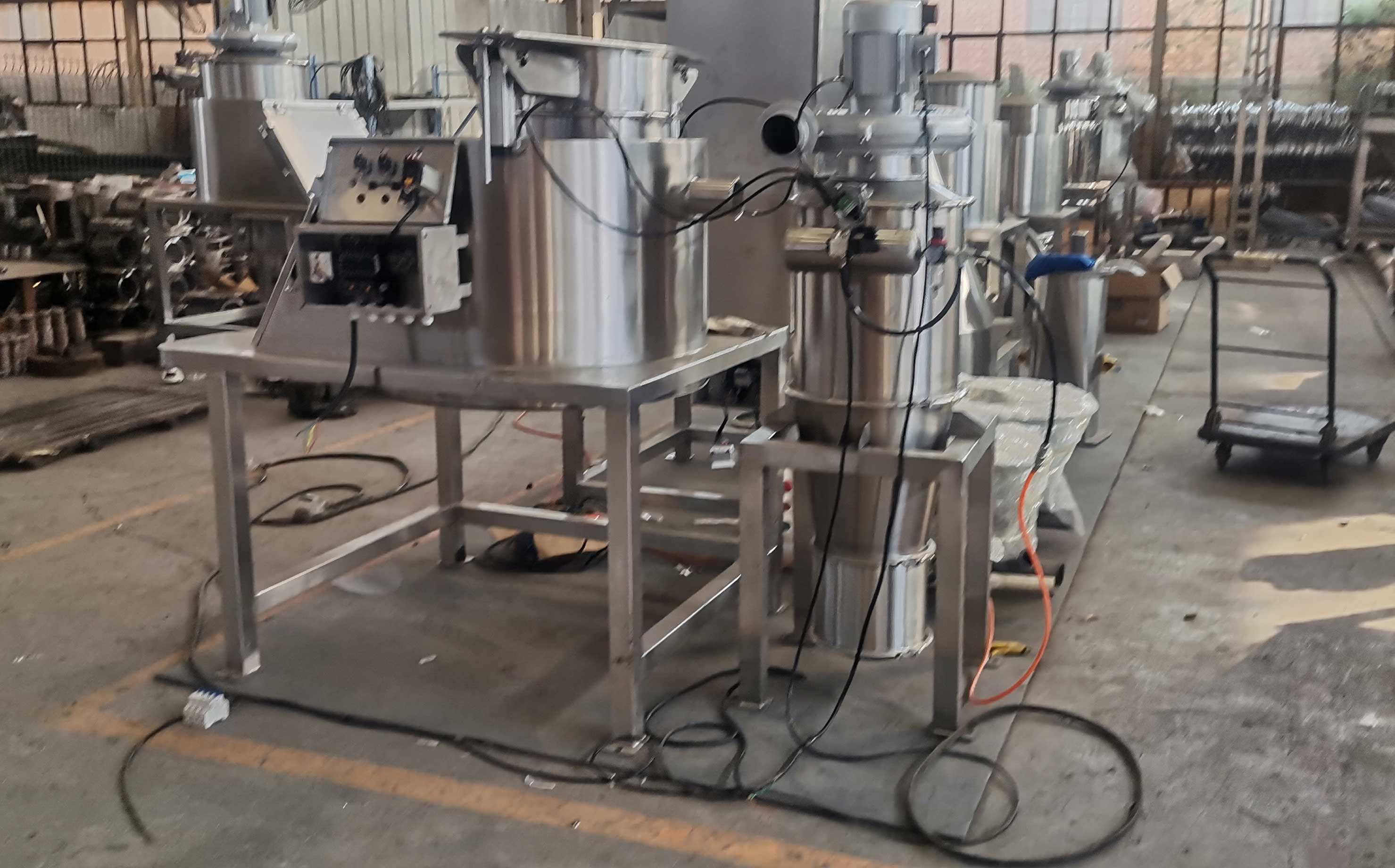 湖北武漢客戶非標(biāo)定制的固體投料站底部放旋振篩后邊接真空吸料設(shè)備發(fā)貨