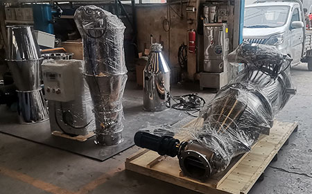 陜西咸陽(yáng)楊總訂購(gòu)的兩臺(tái)連續(xù)式真空上料機(jī),用來(lái)輸送玉米淀粉。兩臺(tái)650連續(xù)式上料機(jī)正在封箱做發(fā)貨準(zhǔn)備