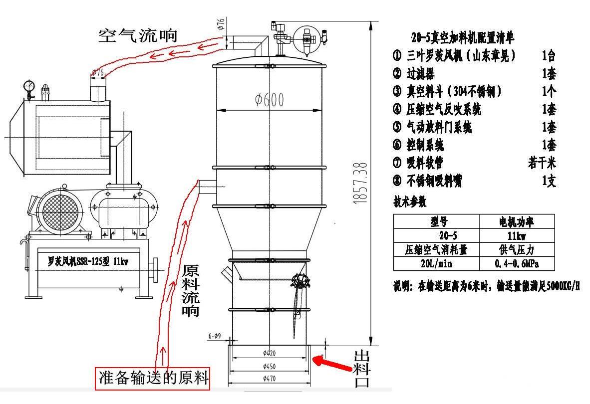 4.將壓縮空氣管插入進(jìn)料器的入口,調(diào)節(jié)減壓閥以確保系統(tǒng)壓力保持在0.6Mpa,并在真空下將壓縮空氣連接器與氣瓶的壓縮空氣連接器連接 漏斗根據(jù)連接圖。