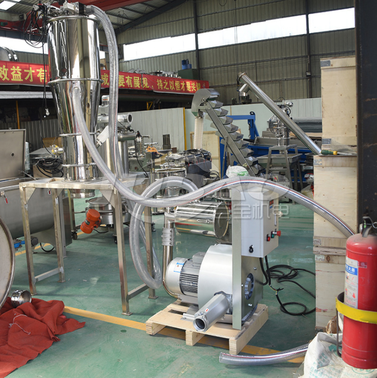 氣動(dòng)真空上料機(jī)是利用壓縮空氣通過真空發(fā)生器產(chǎn)生高真空實(shí)現(xiàn)對(duì)物料的輸送,不需要機(jī)械式真空泵,具有結(jié)構(gòu)簡單、體積小、免維修、噪聲低、控制方便、消除物料靜電和符合GMP要求等優(yōu)點(diǎn)。真空發(fā)生器產(chǎn)生的高真空,使被輸送的物料杜絕了分層現(xiàn)象,保證了混合料成分的均一性,是壓片機(jī)、膠囊填充機(jī)、干法制粒機(jī)、包裝機(jī)、粉碎機(jī)、振動(dòng)篩等機(jī)械自動(dòng)上料的設(shè)備。