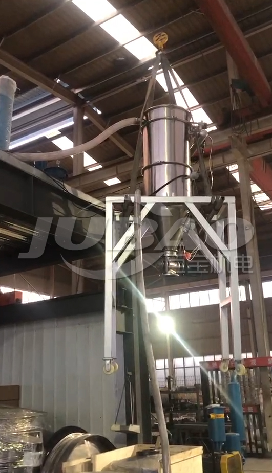 真空上料機(jī)是目前新型的一種上料設(shè)備,不同于螺旋上料機(jī),這種真空上料機(jī)是采用的漩渦氣泵抽真空的原理,將密閉的料罐抽成真空狀態(tài),進(jìn)料口插入物料噸包袋內(nèi),形成的負(fù)壓差使物料吸入上料機(jī)的料罐內(nèi)。當(dāng)真空上料機(jī)的料罐卸料閥打開,整個(gè)料罐內(nèi)的負(fù)壓狀態(tài)消失,物料因?yàn)樽陨碇亓ψ饔寐淙胂旅娴牧蟼}內(nèi)。