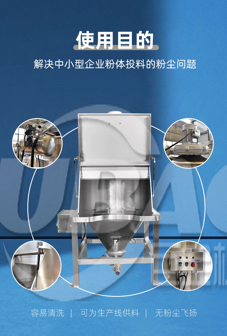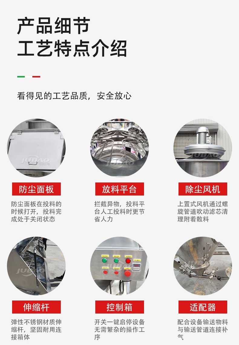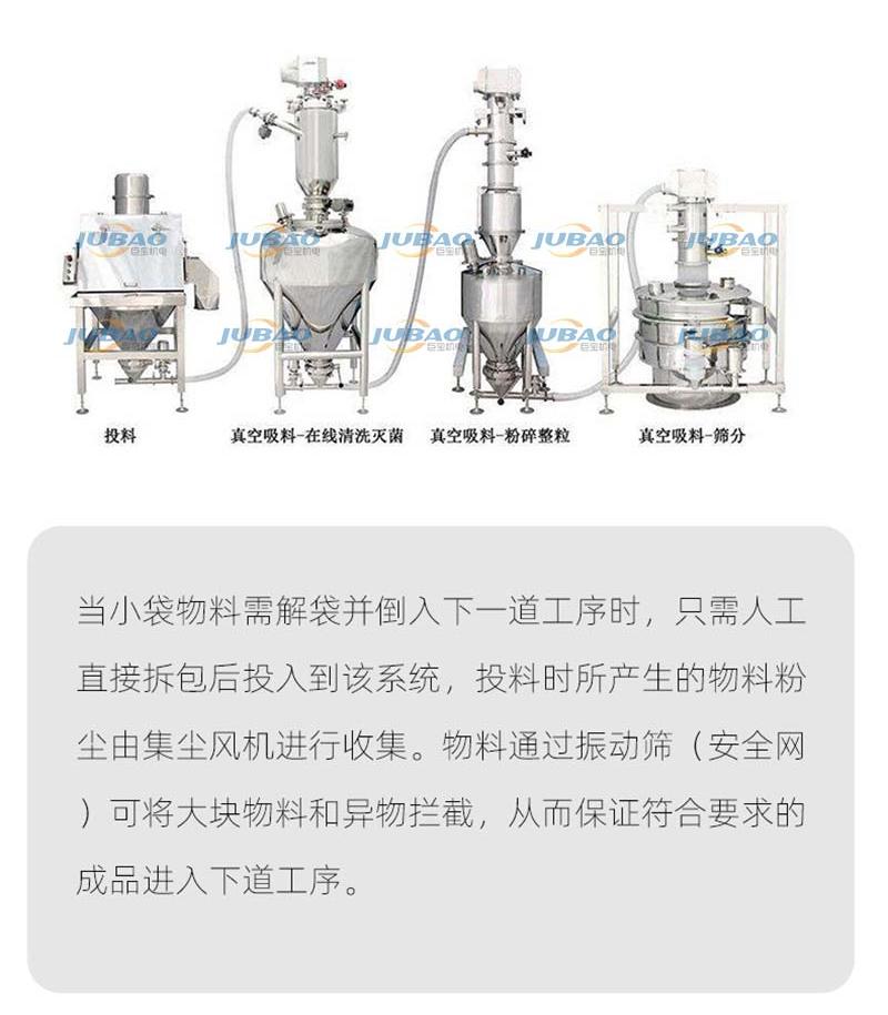 ◇ 集塵開袋投料站內(nèi)可以安裝振動篩分機(jī),有效去除物料中的異物;
