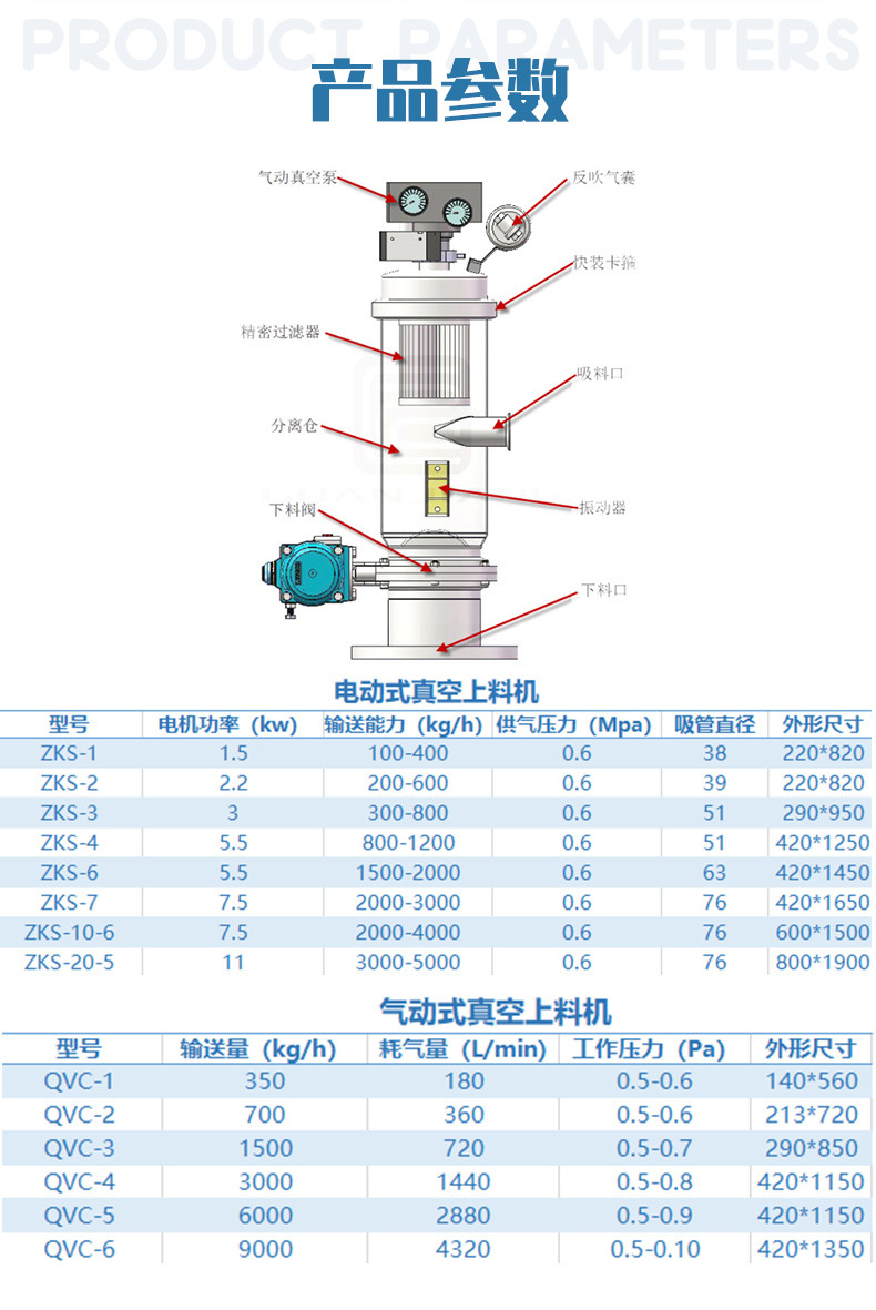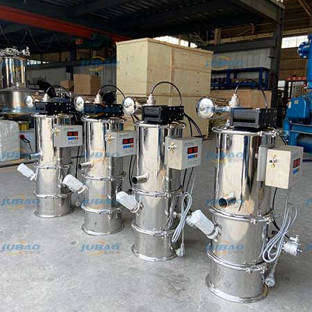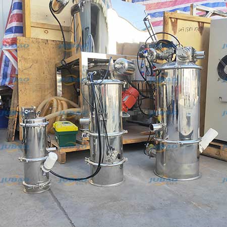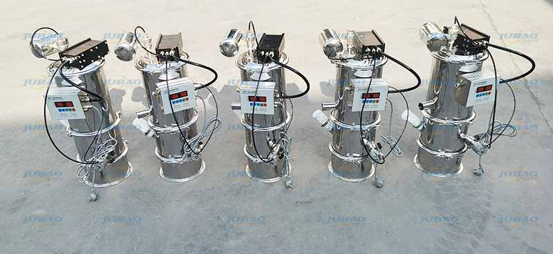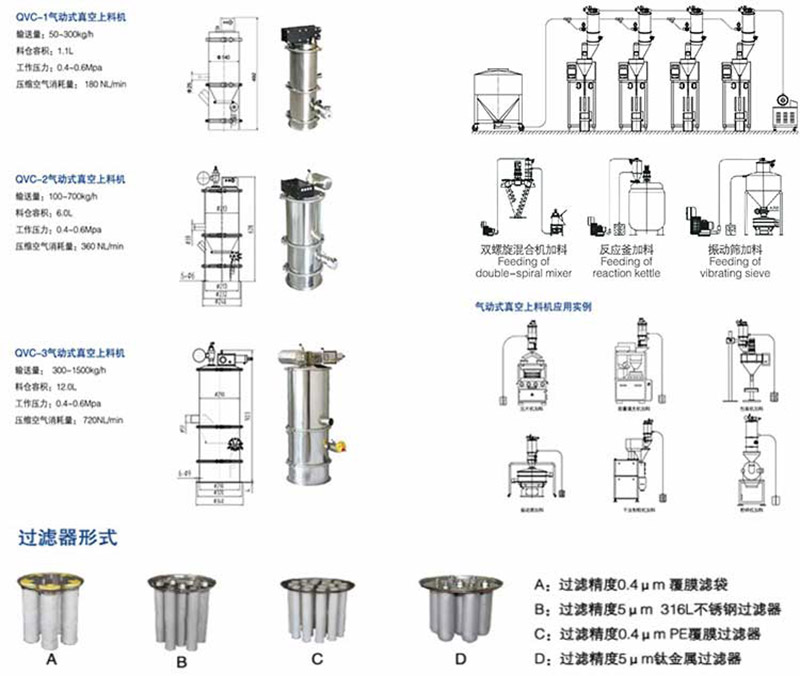 我公司生產(chǎn)的真空上料機是一種粉狀料、粒狀料、粉粒料混合料的真空輸送設(shè)備。由真空泵(無油、無水)、真空料斗、過濾器(有聚酯覆膜過濾器、PE過濾器、316L不銹鋼過濾器或鈦金屬過濾器多種選擇)、壓縮空氣反吹裝置、氣動放料門裝置、料位自動控制裝置、不銹鋼吸料咀、輸送軟管等組成,整套系統(tǒng)設(shè)計合理、制造精美。