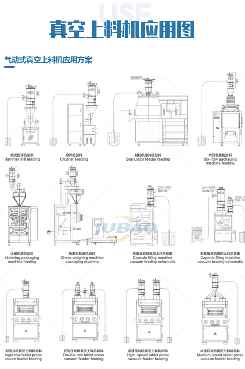 我公司生產(chǎn)的真空上料機是一種粉狀料、粒狀料、粉粒料混合料的真空輸送設(shè)備,是壓片機、膠囊填充機、干法制粒機、包裝機、粉碎機、振動篩等機械自動上料的設(shè)備。真空上料機的使用,可以減輕工人勞動強度,解決加料時粉塵外溢等問題,是制藥廠、食品廠通過GMP認證、促進清潔、文明生產(chǎn)的設(shè)備。